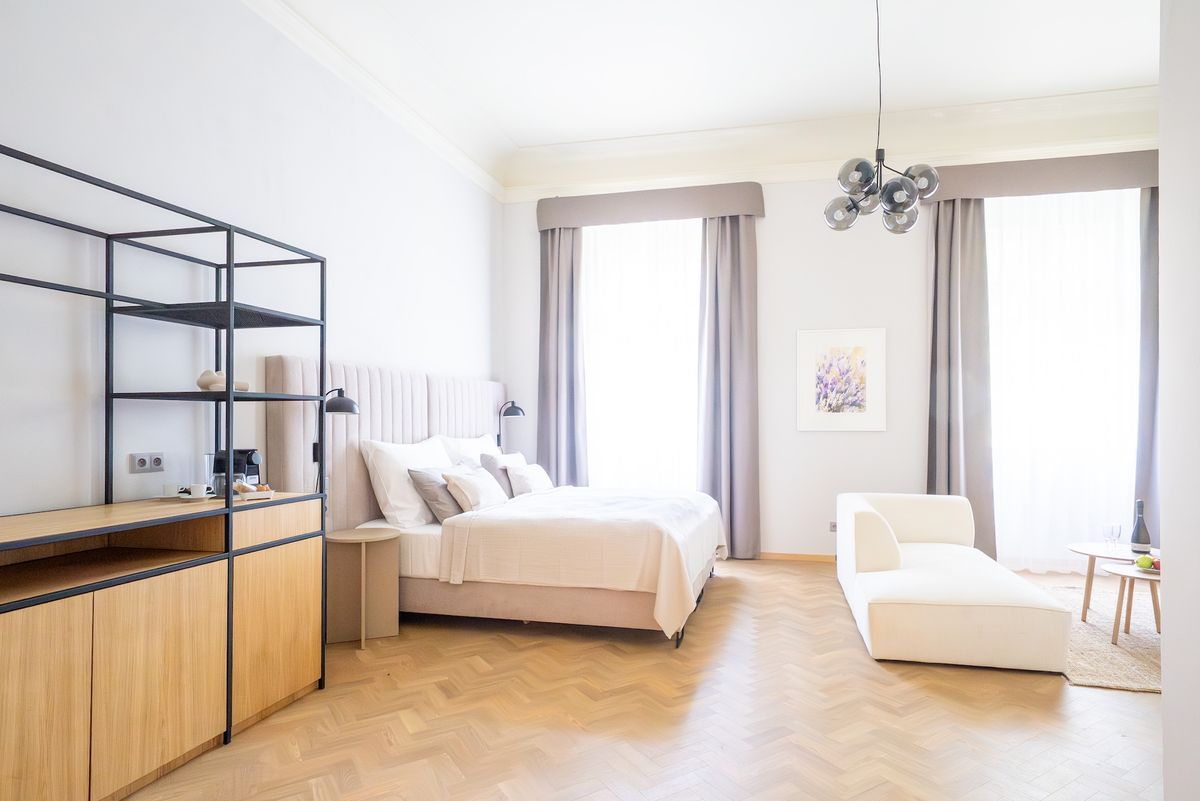 Die Zimmer zeichnen sich durch großzügige Raumgefühl und zeitlose Eleganz aus, die durch hohe Decken unterstrichen wird. Jedes Zimmer hat eine originelle künstlerische Dekoration, die von botanischen Motiven inspiriert ist.